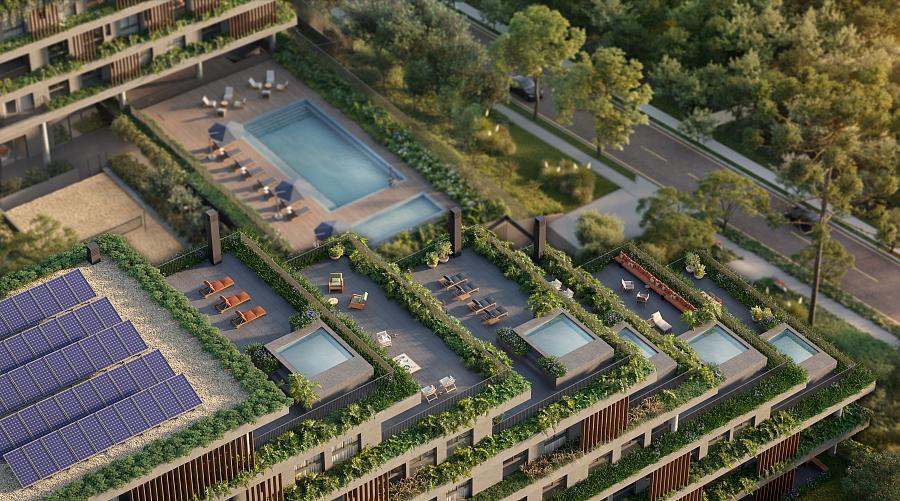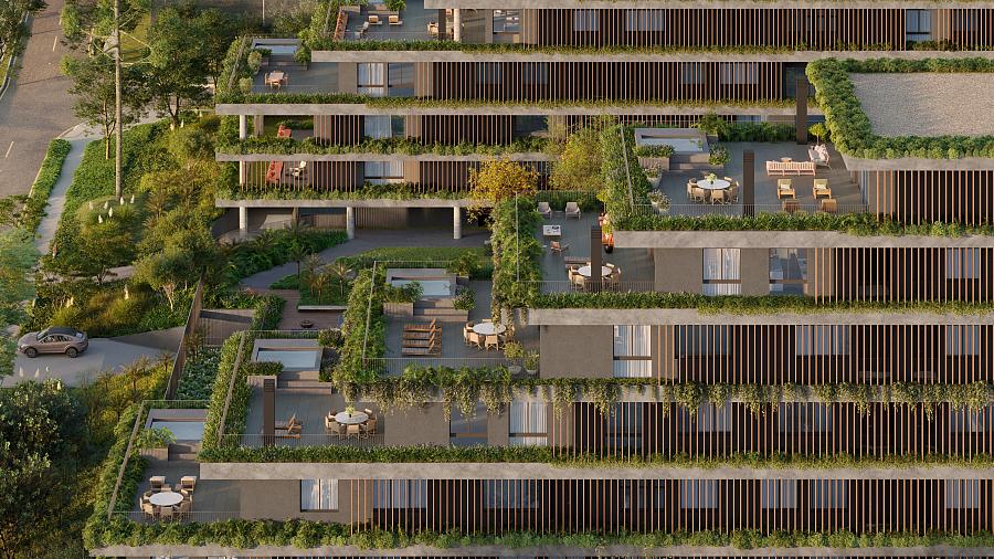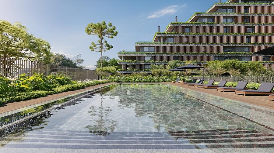 No condomínio haverá imóveis que vão de 181 a 1.043 m², de 2 a 5 suítes e 3 a 7 vagas e garagem.