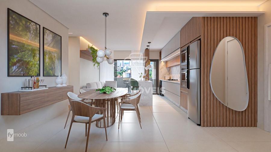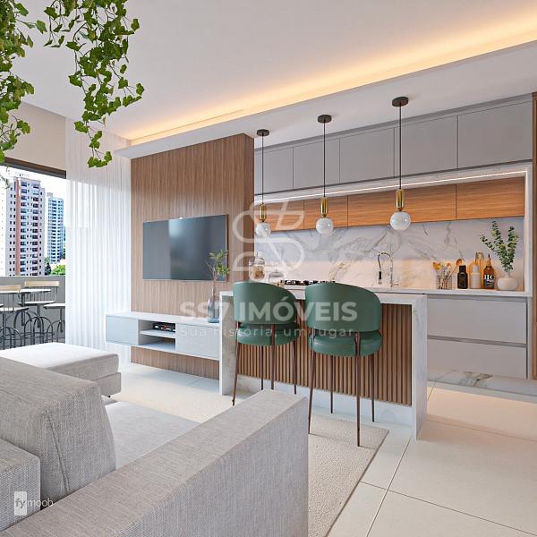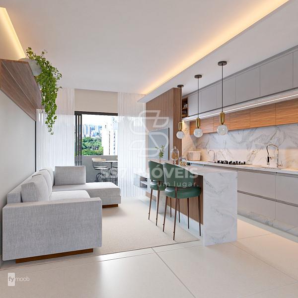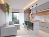 - cozinha integrada com sala e área de serviço, com piso em porcelanato.
