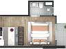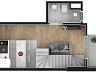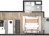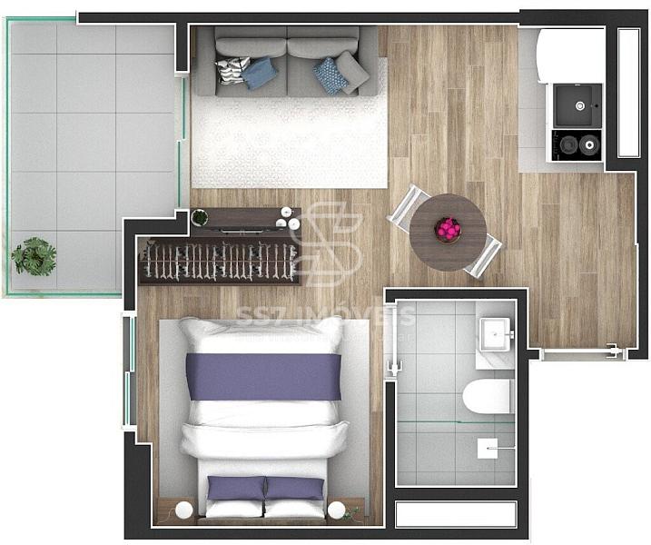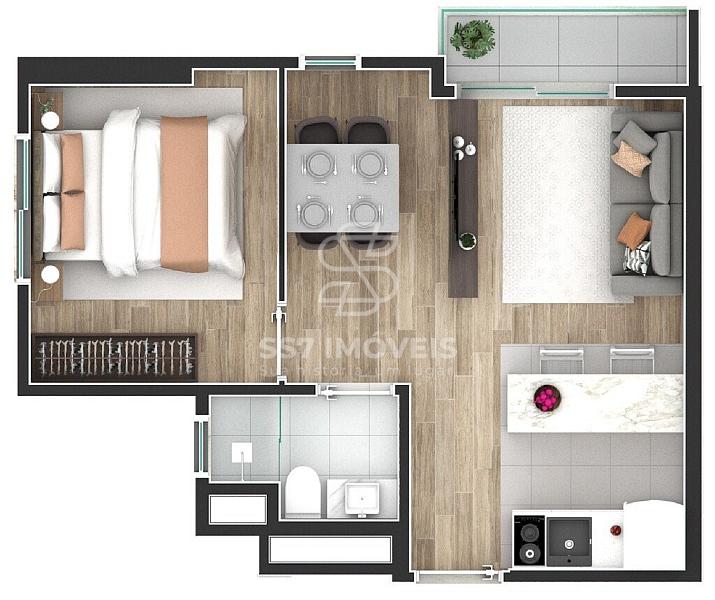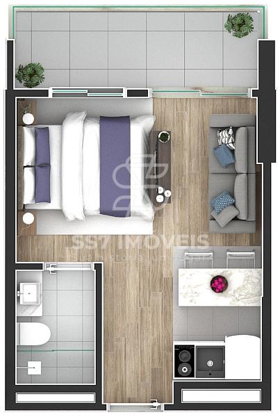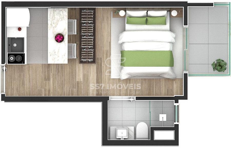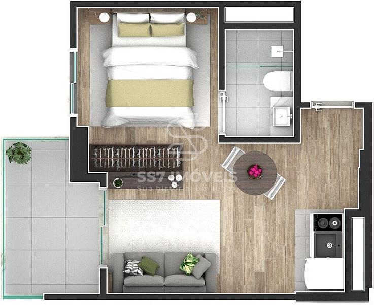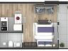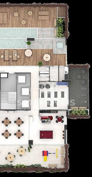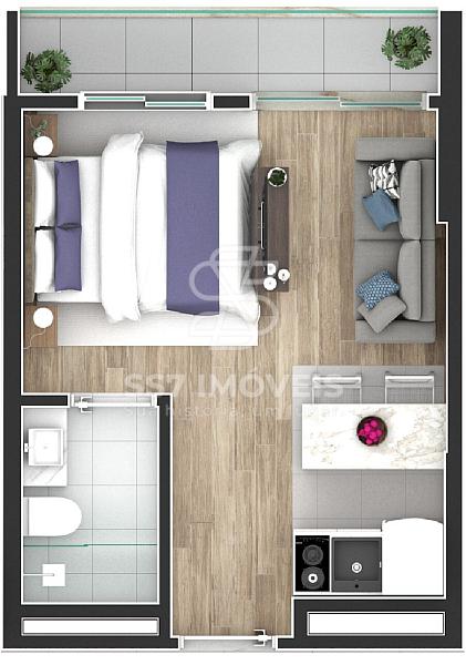 O condomínio conta com unidades studios de 25,18 m² à 34,46 m², a unidade anunciada refere-se a901 com 33,94 m² de área privativa,