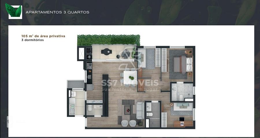 Apartamento com 185m² de área no total sendo 106,31m² de área privativa, contendo: 03 quartos (01 suíte), sala para dois ambientes com saída para o Garden com churrasqueira à carvão e mais de 35m² de espaço descoberto privativo, cozinha estilo americana com lavanderia integrada, banheiro social e 01 vaga de garagem coberta (opção de compra de mais vagas se necessário, consulte valores).