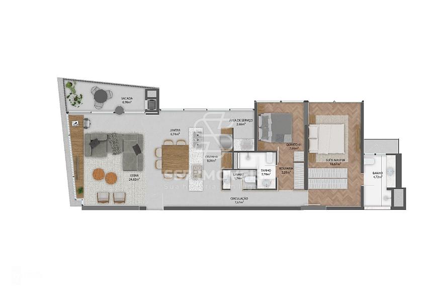 - Espaço gourmet, com paredes moveis e flexíveis.