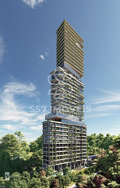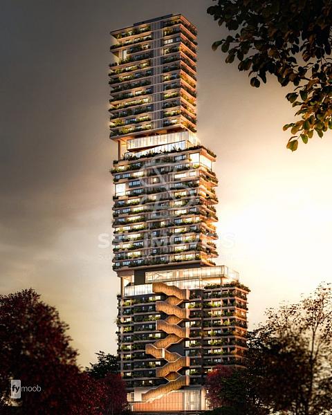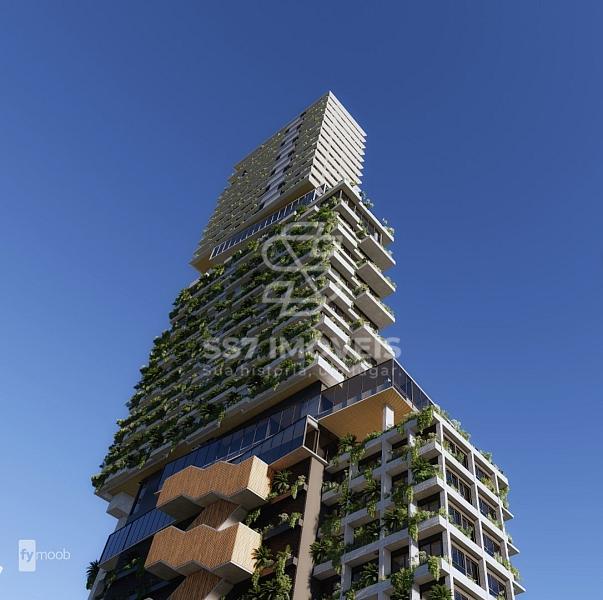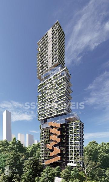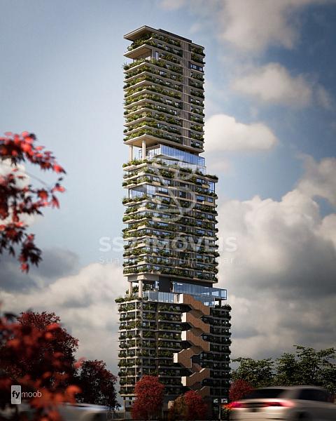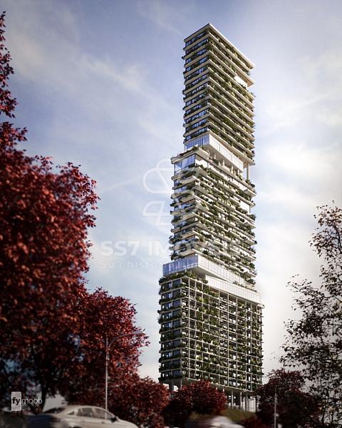 Um projeto com mais de 160 metros de altura e 44 andares. Grandes varandas cobertas de verde materializam uma flroesta urbana em meio à cidade.