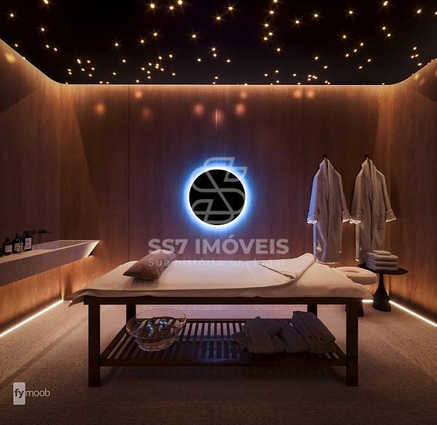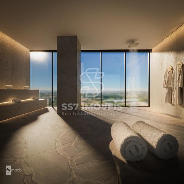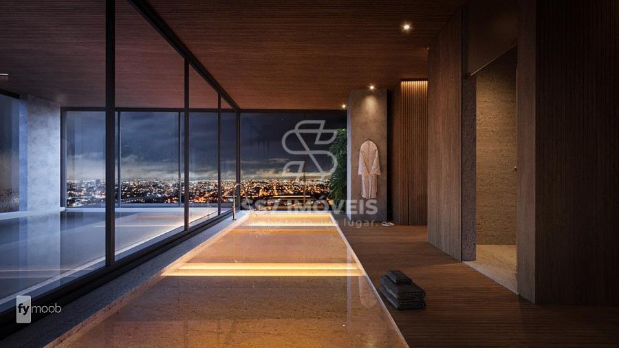o 13º e 14º andar haverá sala multifuncional, espaço fitness, lounge café, sala de massagem e atendimento médico, terraço com lareira, cozinha gourmet, piscina semiolímpica, sauna seca e úmida, hidromassagem, espaço mindfulness.