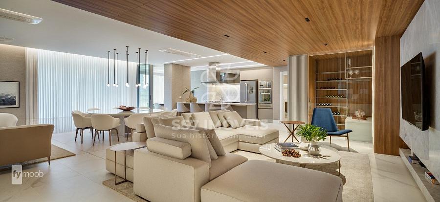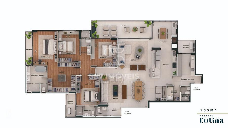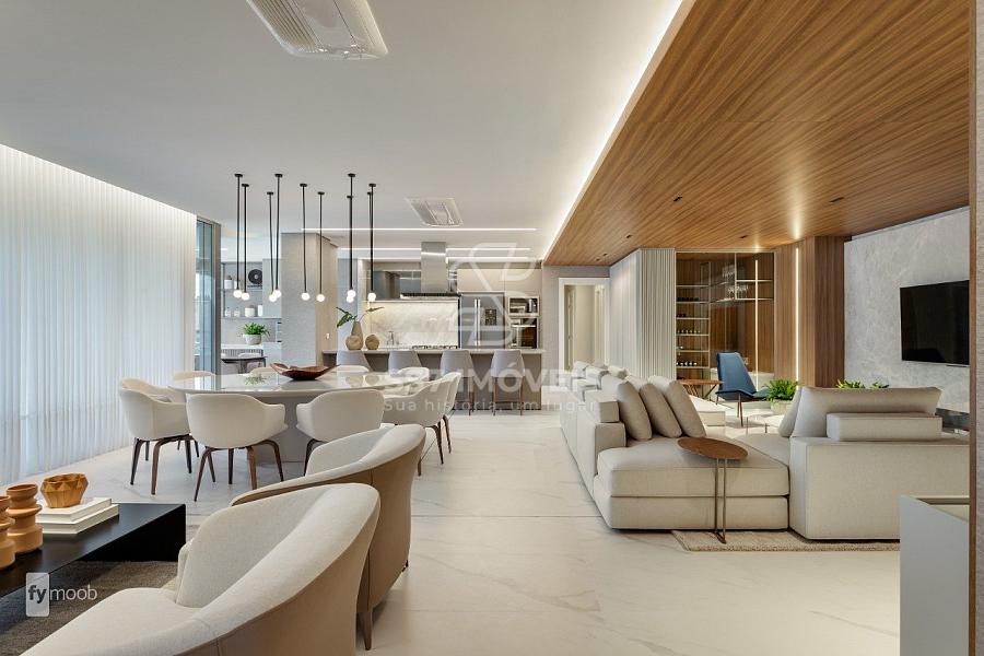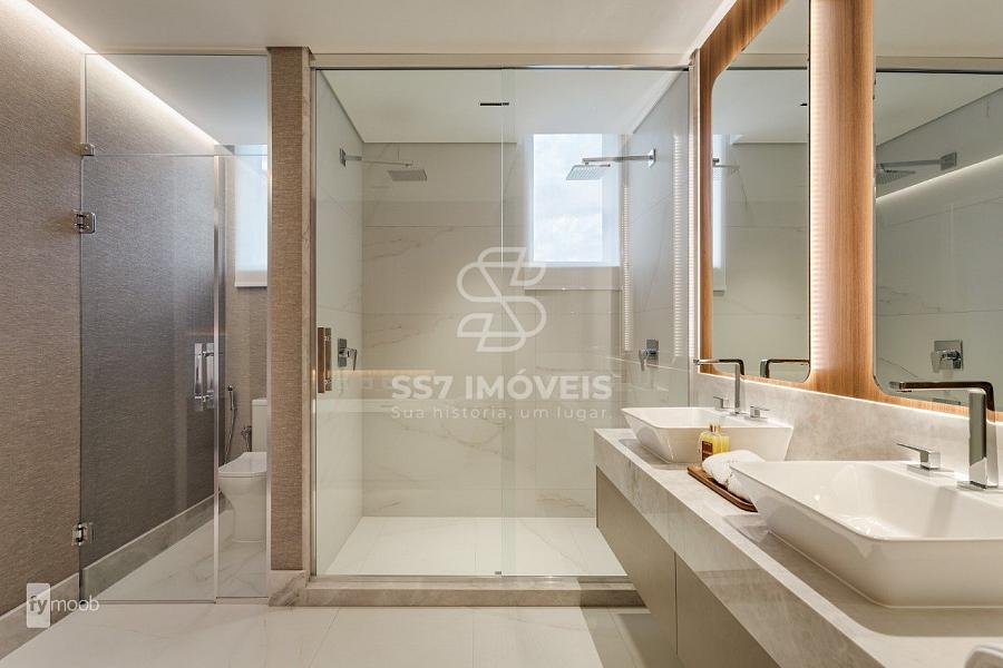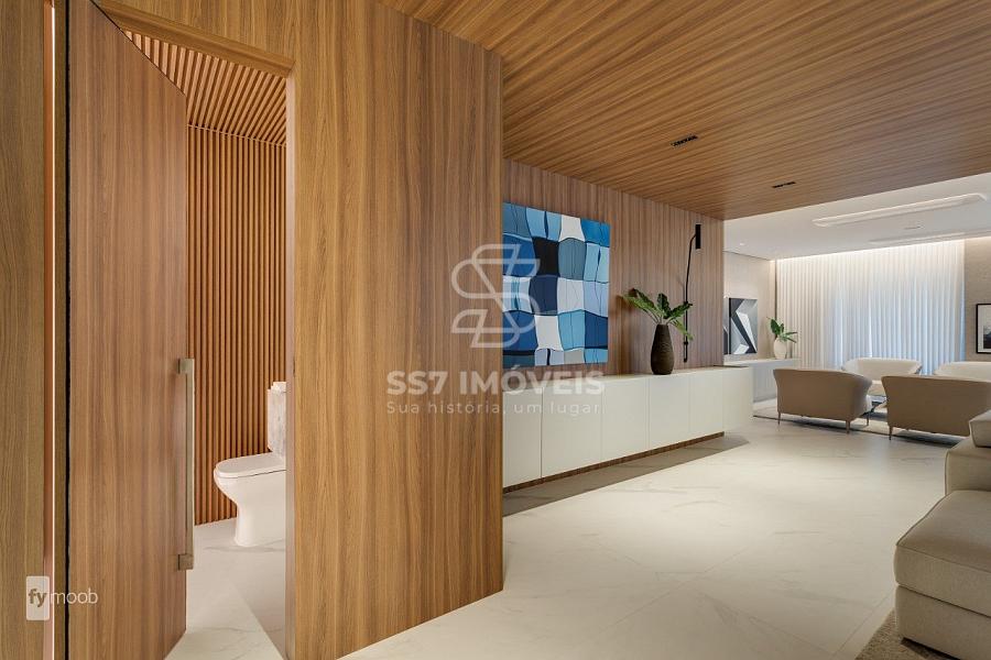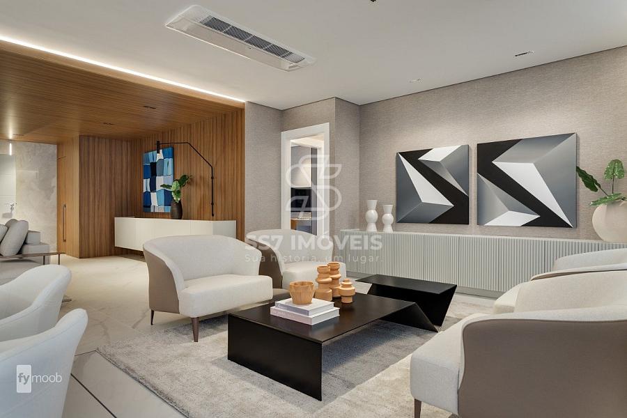 O apartamento possui 257 m² de área privativa, com a seguinte disposição