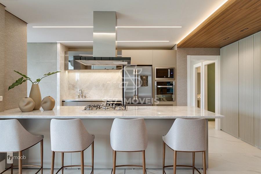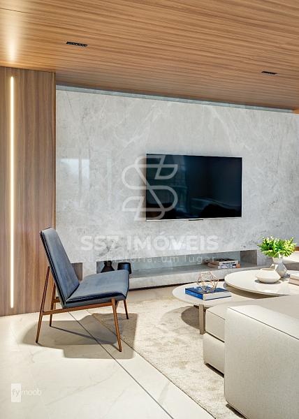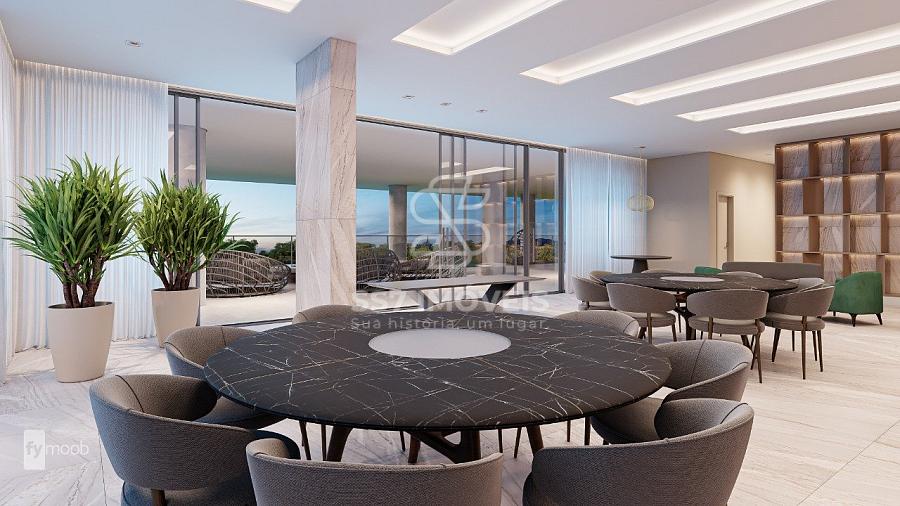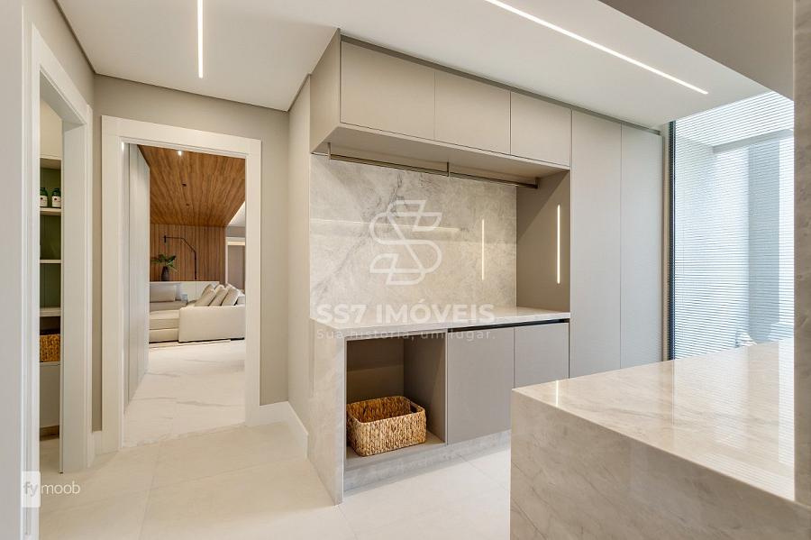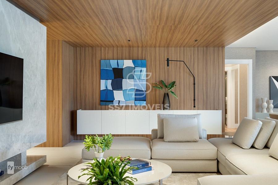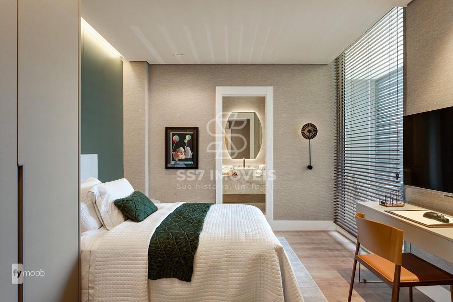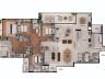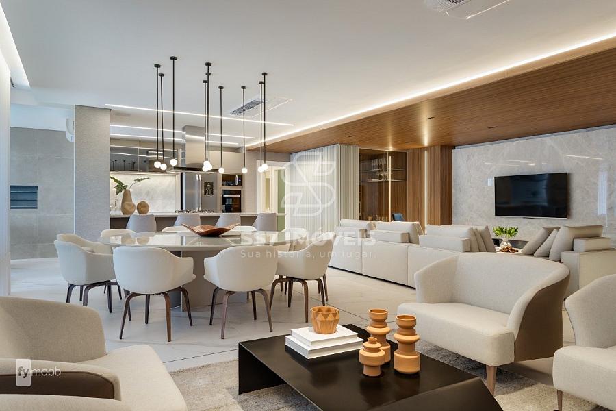O apartamento possui 257 m² de área privativa, com a seguinte disposição