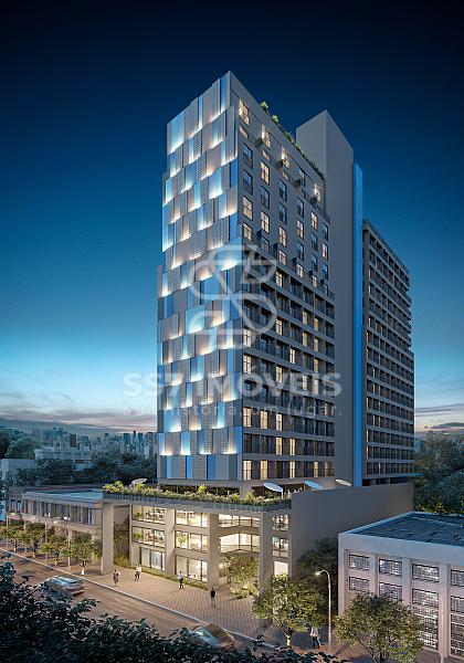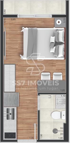 O studio conta com unidades de 15,75 a 17,25 m² de área construída.