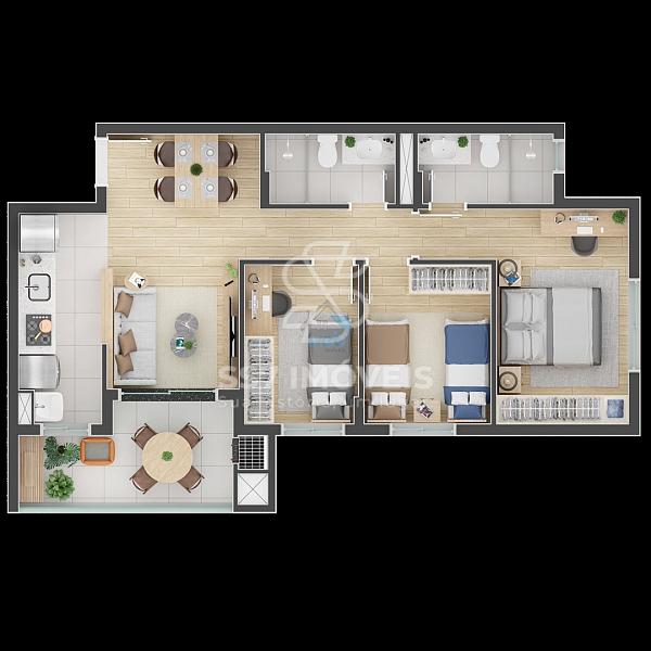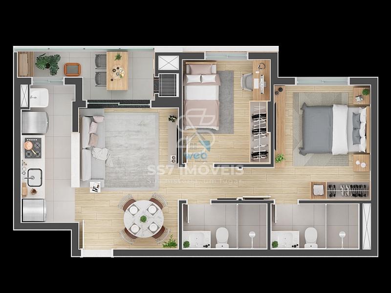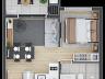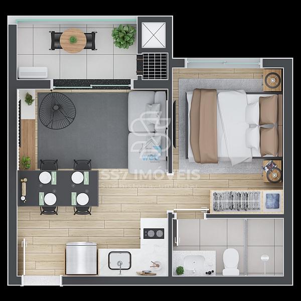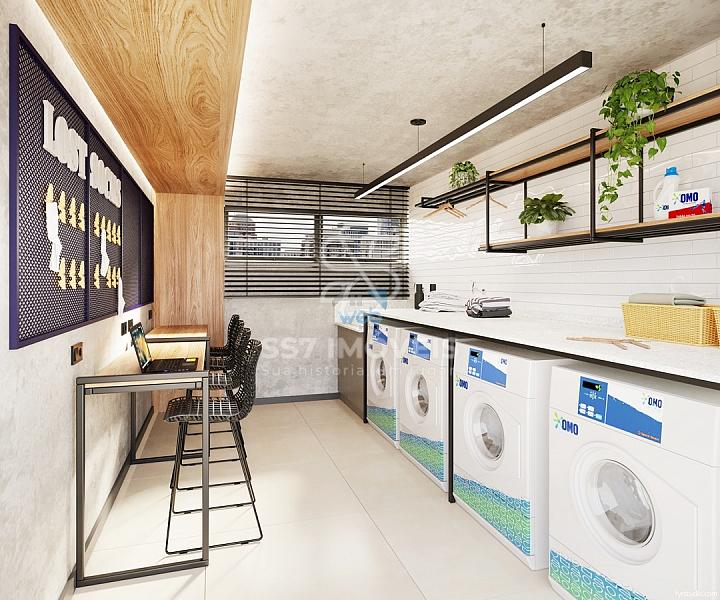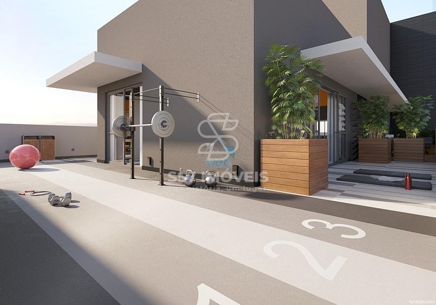 O condomínio possui unidades Studio, 2 quartos e 3 quartos. A unidade anunciada tem a planta com 2 quartos e 55,28 m² de área privativa com1 vaga de garagem e churrasqueira a carvão.