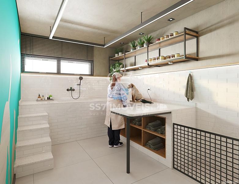 - Piso em porcelanato na cozinha, área de serviço e banheiros.