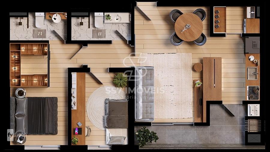 - Planta inteligente com 64,54m² ou 64,26m² de área privativa