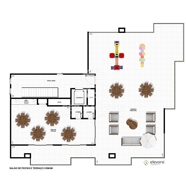 O Residencial Positano conta com elevador, salão de festa equipado e terraço.