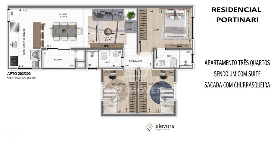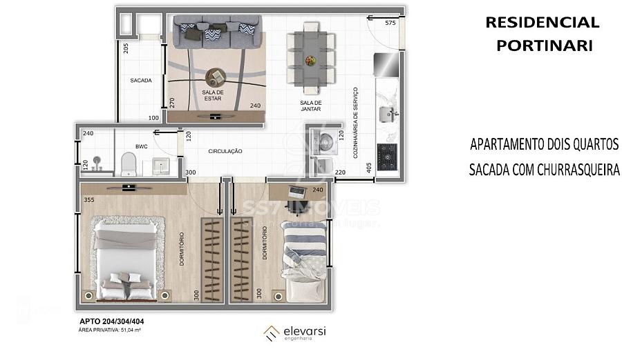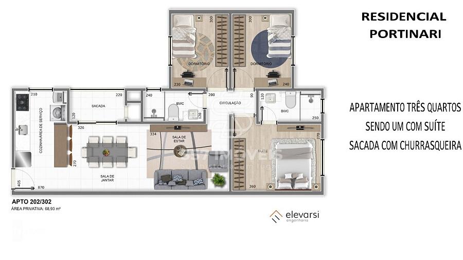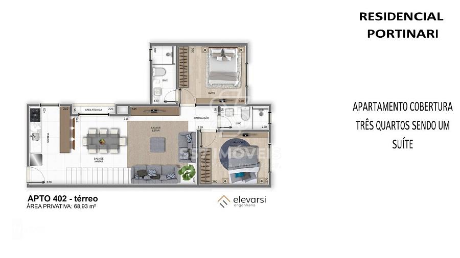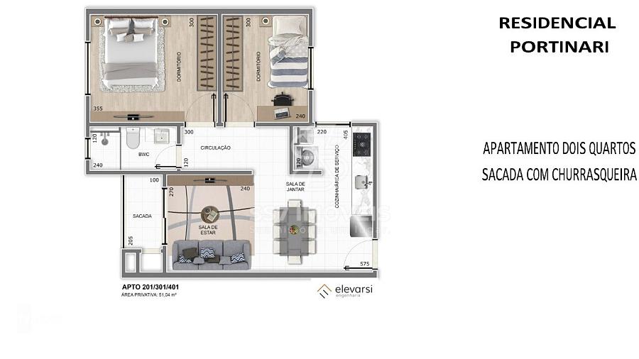 O Residencial Portinari, será composto por 04 andares e 12 apartamentos, sendo o pavimento térreo destinado a vagas de garagem.