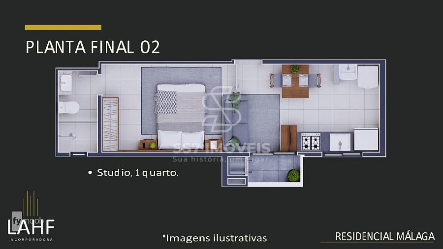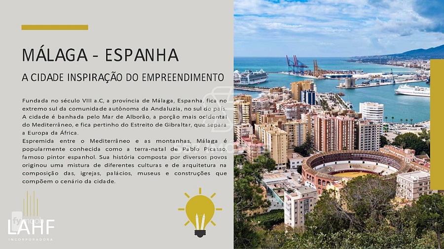 O Residencial Málaga é composto por 11 apartamentos com plantas de 28,13m² a 59,36m² de área útil, a conclusão da obra está prevista para Maio de 2026.