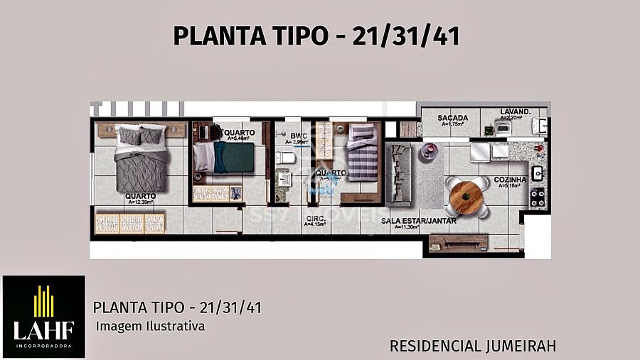 A unidade de 02 dormitórios tem 43,82m² de área util e oferece:
