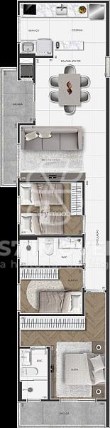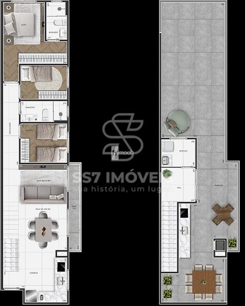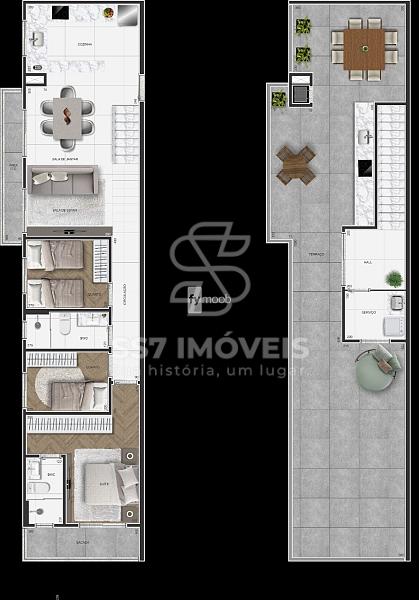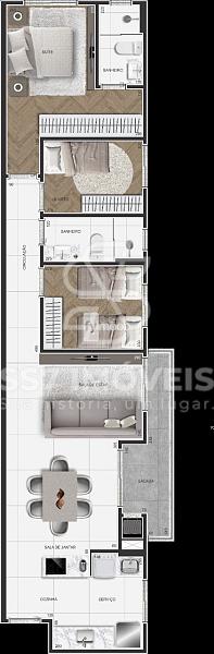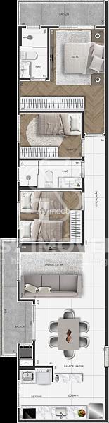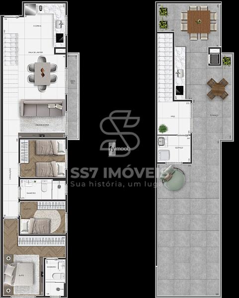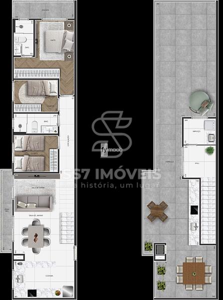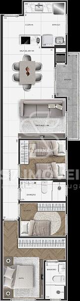 - Cozinha integrada com área de serviço;