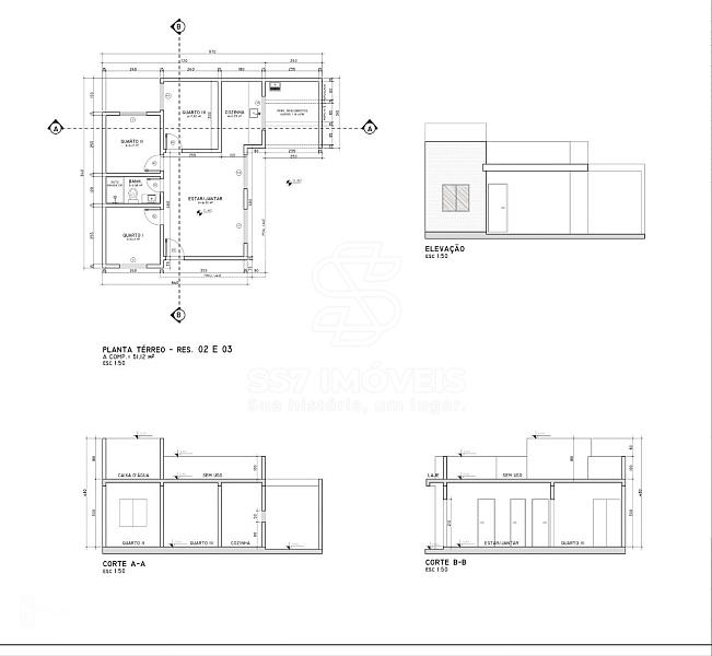 As unidades 02 e 03 têm 51m² de área construída e um terreno com 82m² .