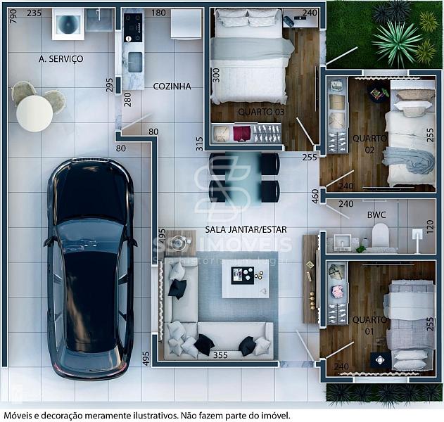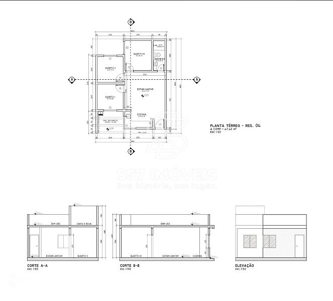 A unidade 04 Fundos, têm 48m² de área construída e um terreno com 80m².