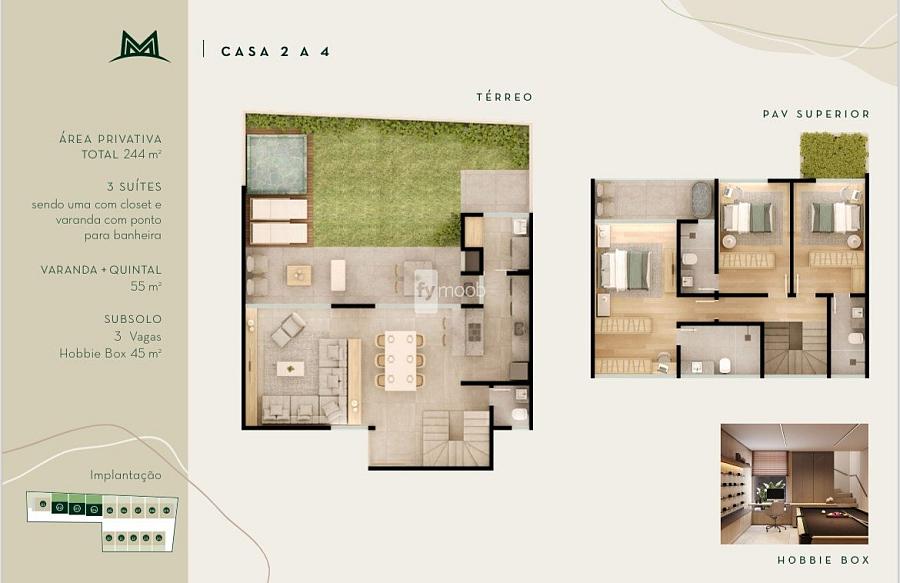 O Mirador da Mata, possui 6 tipologias de plantas onde os ambientes são divididos impecavelmente em cada residência, que variam entre 277,55 a 172,43m² de área privativa. O conceito townhouse foi adotado neste empreendimento para propiciar excelente integração com a Natureza exuberante. Todas as residências possuem vista definitiva e insolação plena, cercadas por mata nativa preservada.