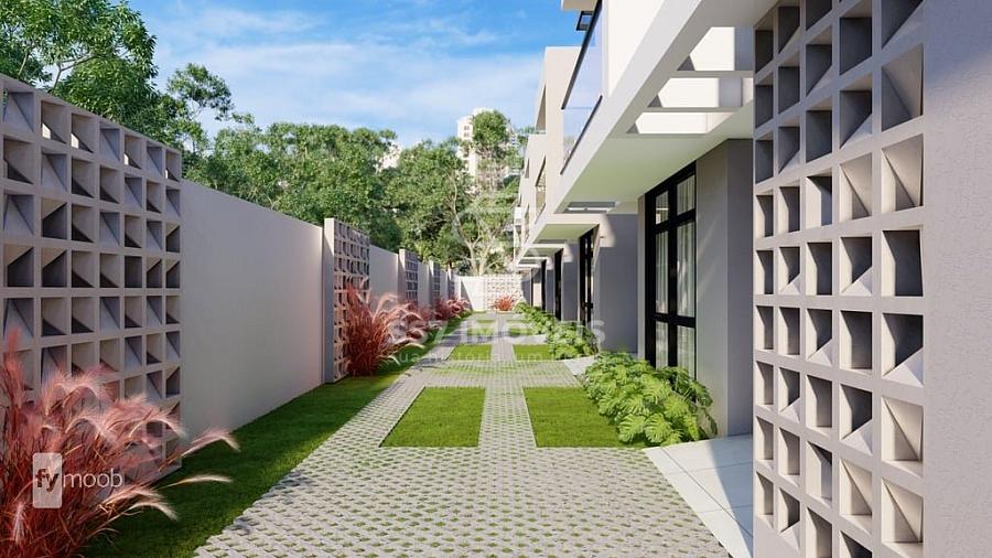 As unidades internas tem 109,43m² de área construída, mais 24,80m² de terraço.