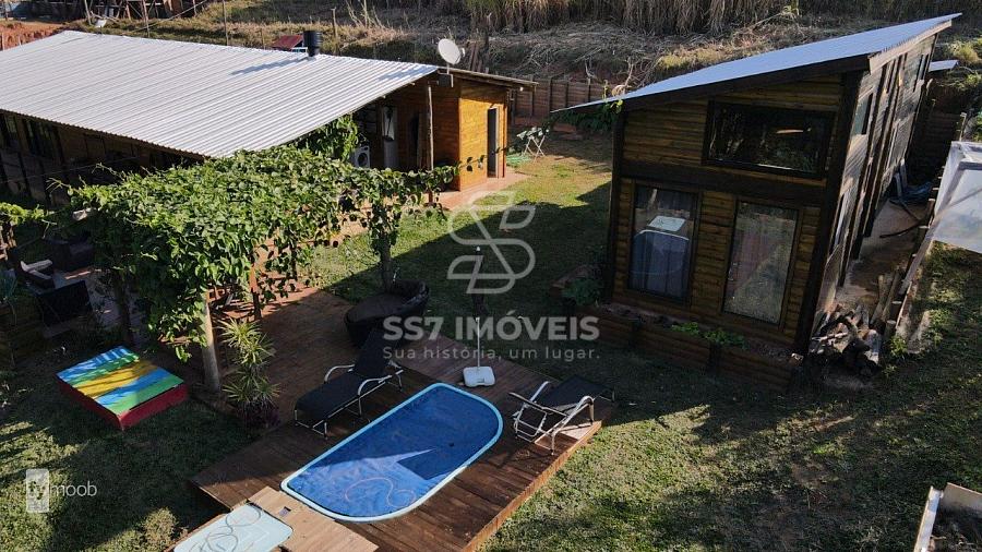 -Casa 1 (200 m²): Steel frame, acabamento externo em pinus autoclavado. 1 suíte com closet, 1 quarto, 1 banheiro, 1 lavabo, escritório amplo.
