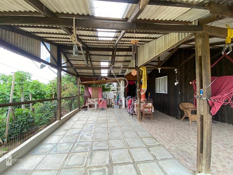-Casa de madeira com 2 quartos, sala e cozinha, ideal para um espaço extra para hóspedes ou para quem busca um refúgio dentro da propriedade;
