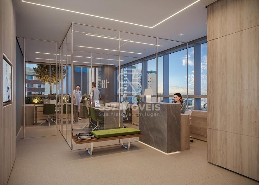 O empreendimento possui consultórios e offices com 19 a 56 m². A unidade anunciada, refere-se ao consultório com 36,57 m² , tendo a seguinte distribuição:
