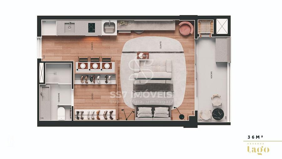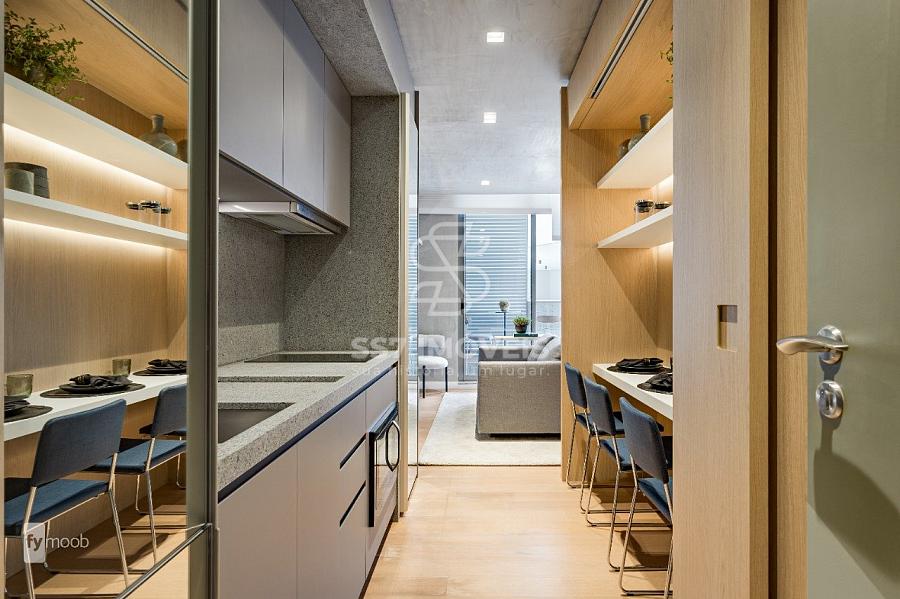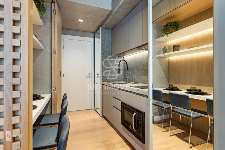 No condomínio há unidades studio, 1 quarto, loft 1 quarto, 2 quartos e duplex 2 quartos. A unidade anunciada possui aproximadamente 35 m² e tipologia studio, contendo: