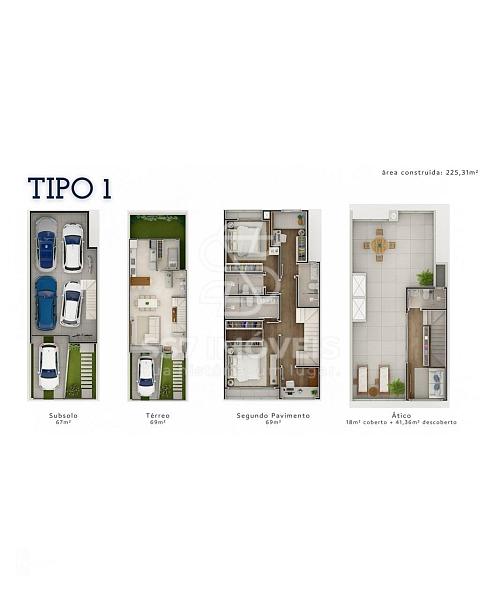 - 1 Vaga de garagem (Tipo 1 tem 4 vagas cobertas no subsolo).