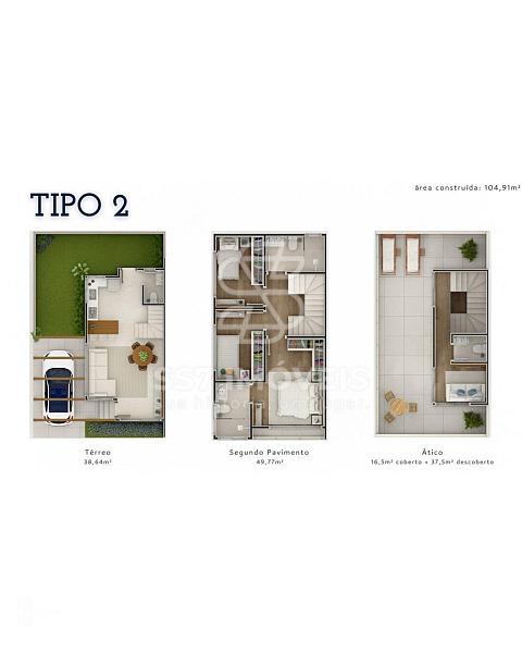 Sobrados 5 a 8 (unidades internas) com 104m² construídos, estão disponíveis por um ótimo valor, qualidade e conforto.